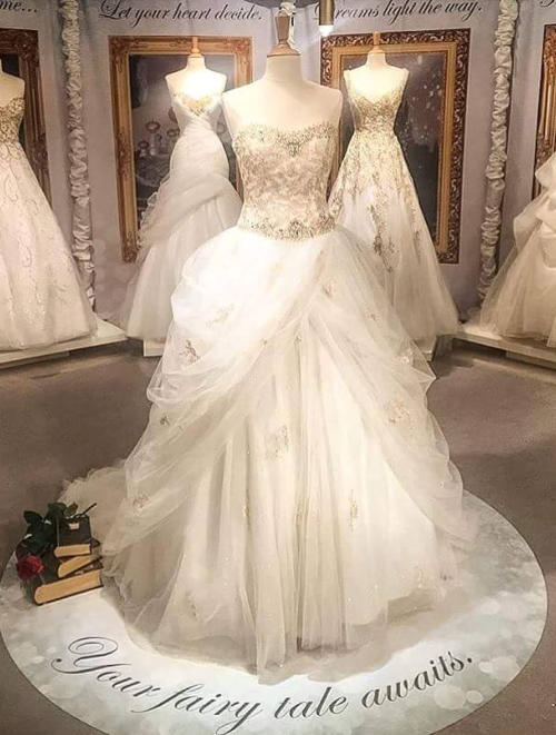 Une invitation aux rêves, les robes de Mariées de Disney. On parle de véritable robe de mariée pas d’un gadget trouvé sur je ne sais quel site d’Asie. La féerie d’une histoire en vrai franchement j’adore.